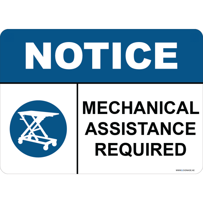 You're reviewing: G Signage - "Mechanical Assistance Required" - OSHA Notice Sign