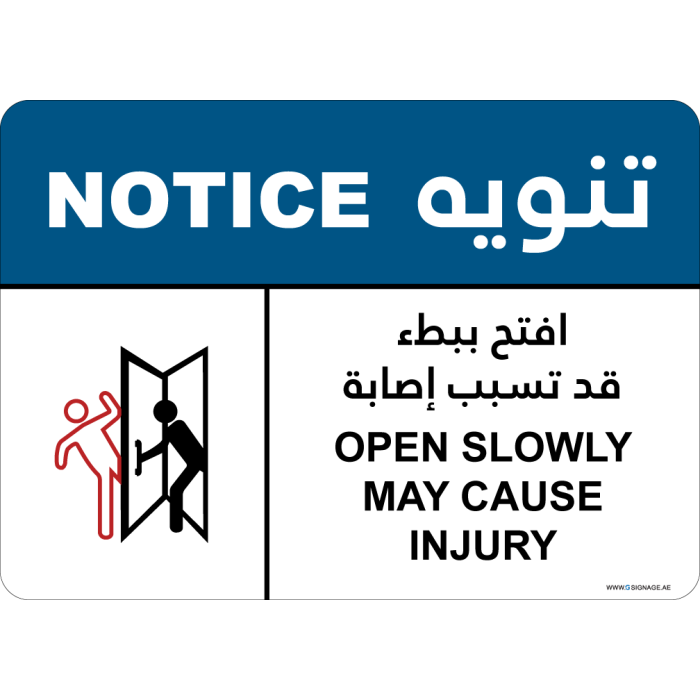You're reviewing: Notice Sign - Open Slowly May Cause Injury - EN-AR