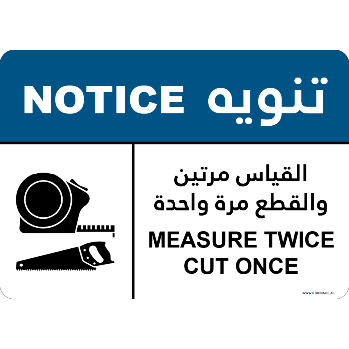 You're reviewing: Notice Sign - Measure Twice Cut Once - EN-AR